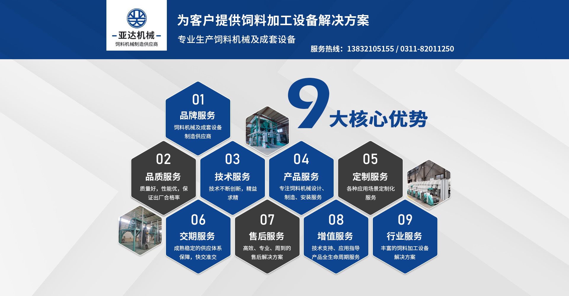 1997年,河北亞達機械制造有限公司創辦于河北省省會石家莊市。如今,亞達已成長為集飼料機械及工程自動化控制技術及產品生產與制造,工程設計與安裝的企業。亞達公司位于石家莊市西三環中段,占地30畝。 亞達公司主要為客戶提供飼料加工設備解決方案,可承接1-100T/H畜禽飼料工程,1-20T/H預混合飼料工程,1-30T/H水產飼料工程,飼料機械升級與改造工程......